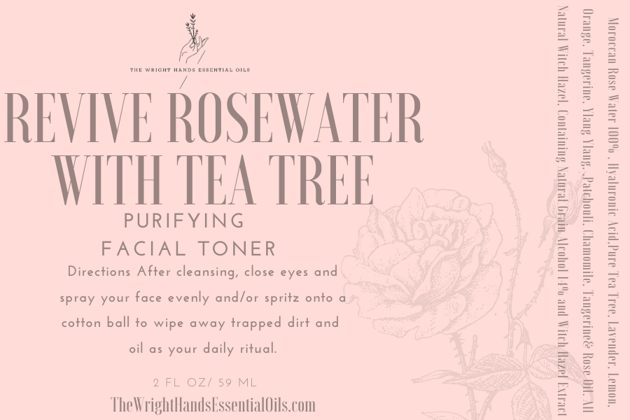 Moroccan Rose Water, Hyaluronic Acid, Pure Essential Oils (Tea Tree, Rose, Lavender, Lemon, Orange, Tangerine, Ylang Ylang, Patchouli, Chamomile), Natural Witch Hazel with Grain Alcohol (14%)